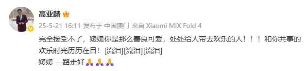 当天皇冠皇冠足球平台 ,《家有儿女》“夏东海”演员高亚麟发文悼念朱媛媛:“完全接受不了,媛媛你是那么善良可爱,处处给人带去欢乐的人!!!和你共事的欢乐时光历历在目!媛媛,一路走好!”